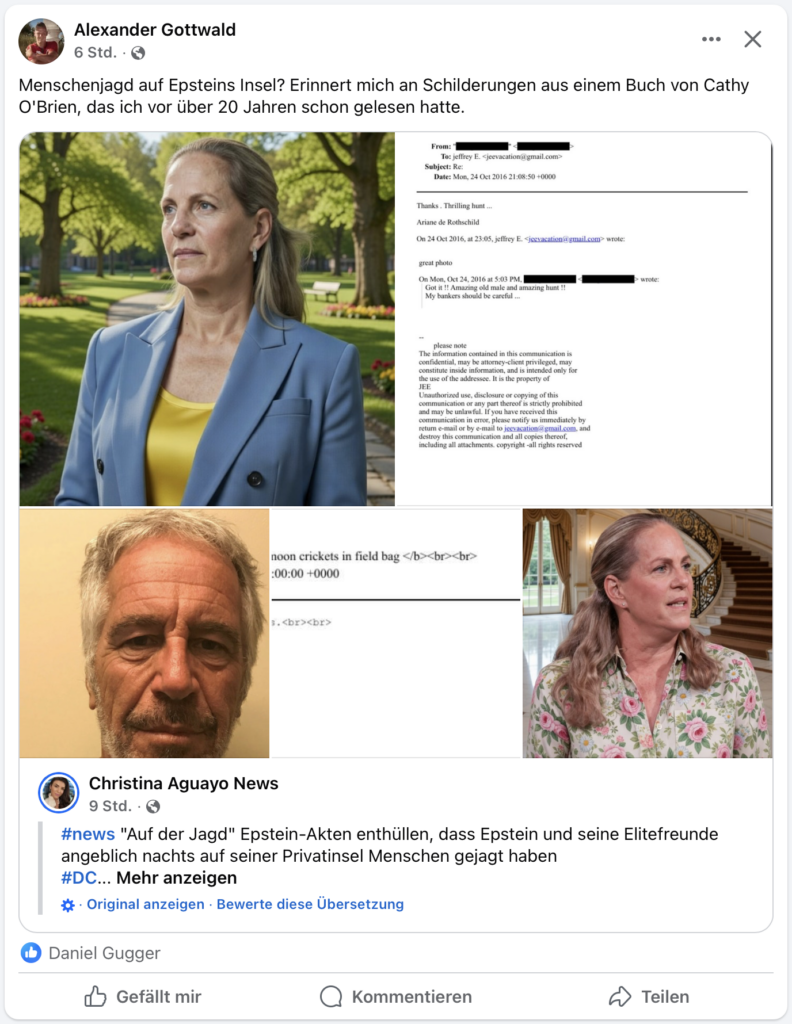 Hier mailt z.B. Ariane de Rothschild Epstein einen Link zu einem geschmacklosen SRF Video