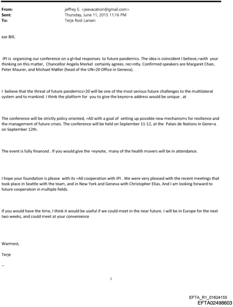 Jeffrey Epstein schickt dem norwegischen Sozialdemokraten Terje Rød-Larsen eine vorformulierte E-Mail für Bill Gates: